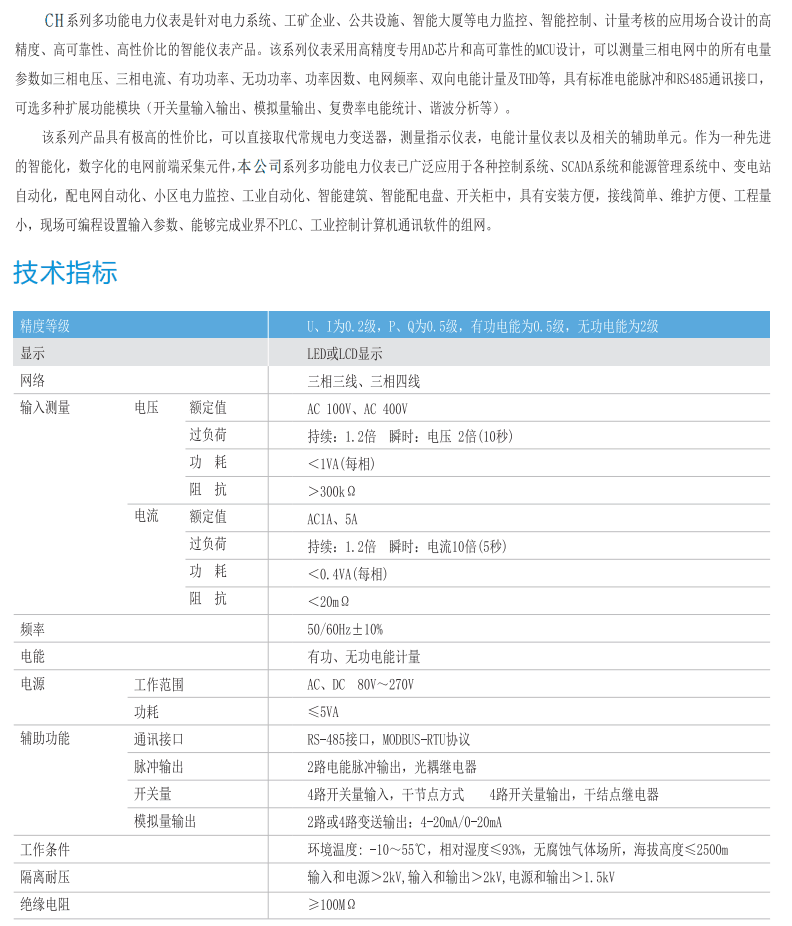 CH7000系列CH6000系列多功能電力儀表